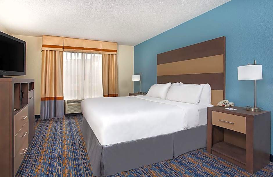 Featuring a 37 inch flat-screen TV, this king room also offers a microwave, refrigerator and a coffee machine.